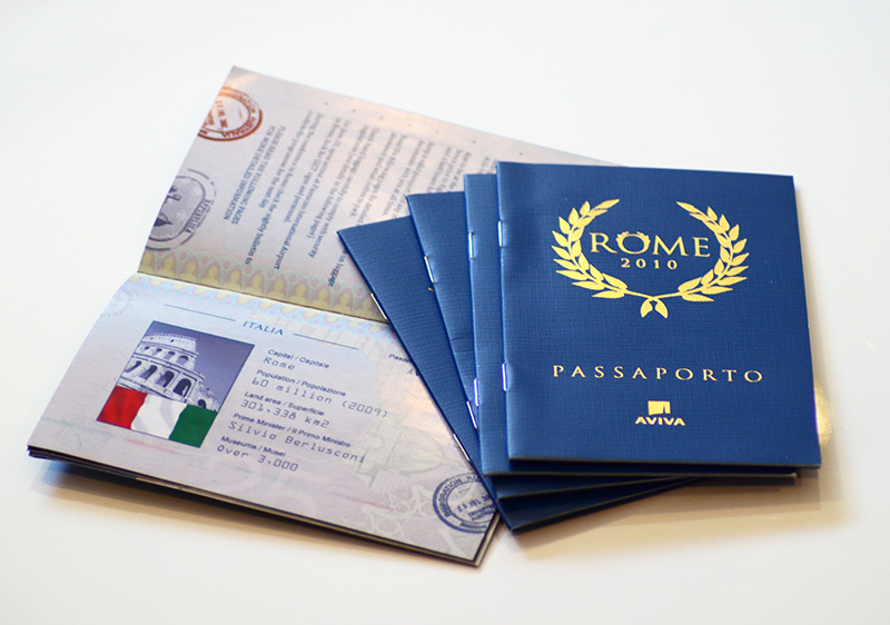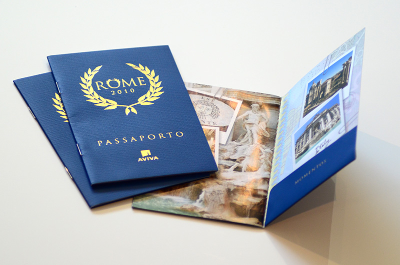 A custom-designed passport created for Aviva Canada to promote an exclusive incentive trip to Italy for their top-selling brokers. Crafted with a linen cover and gold foil detailing to mirror the look and feel of a real passport, the piece featured a pocket fold to securely hold travel documents. Inside, the layout showcased the full daily itinerary, blending premium materials with functional design to build excitement and elevate the travel experience from the very first touchpoint.