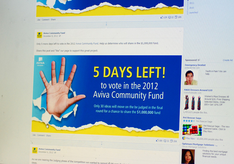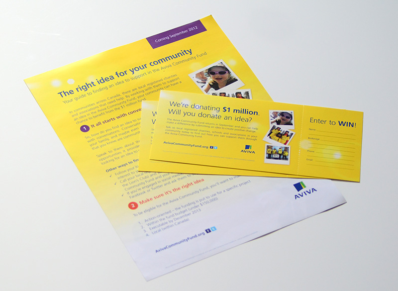 Served as Creative Lead on the Aviva Community Fund, an annual fundraising initiative that awarded $1 million to community-based projects across Canada. Individuals and organizations submitted ideas for a chance to receive funding for causes that make a local impact. I led the development of all campaign creative, including flyers, buckslips, billboards, commercial spots, videos, social media content, newspaper ads, and more—driving awareness, participation, and national engagement year after year.