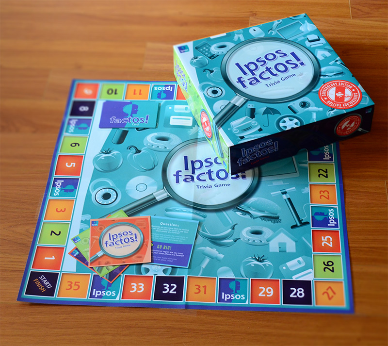 Developed Ipsos Factos—a custom board game created for Ipsos Reid as a playful, engaging way to showcase their market research data. This cheeky trivia game transformed real consumer insights into fun, competitive questions, offering a fresh, interactive take on the brand’s expertise. Designed to entertain while educating, the game served as both a conversation starter and a memorable marketing tool.